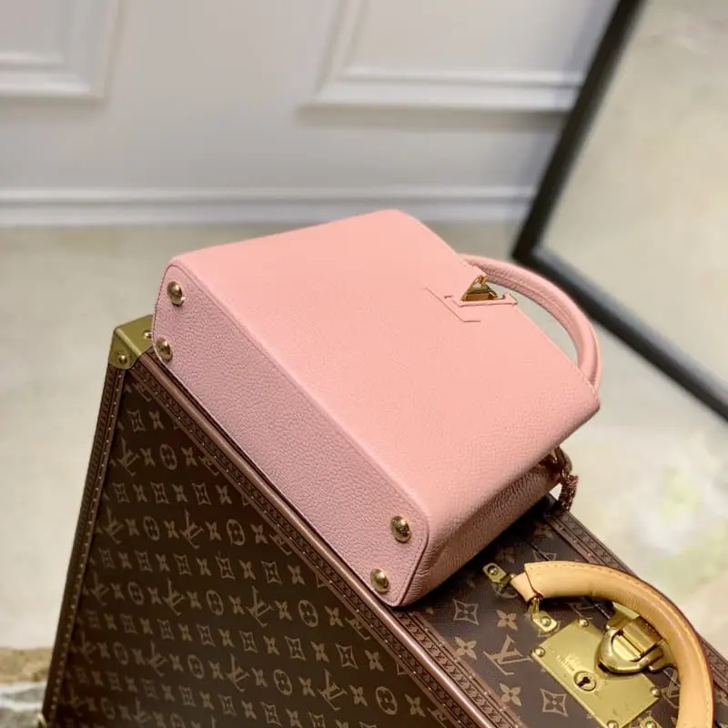 [Model M21103 Metallic Mini] Capucines Mini Handbag French imported calfskin, shiny metal accessories, unique Capucines flap can be put inside the bag to display the letter logo, or turned out to show the Monogram Flower pattern size: 27x18x9 cm