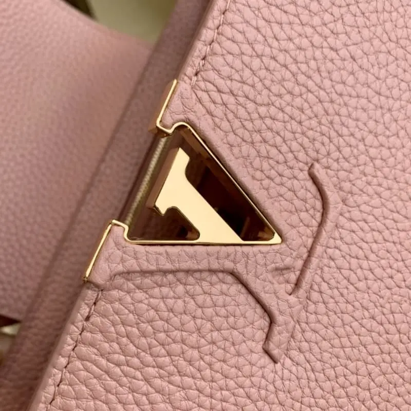 [Model M21103 Metallic Mini] Capucines Mini Handbag French imported calfskin, shiny metal accessories, unique Capucines flap can be put inside the bag to display the letter logo, or turned out to show the Monogram Flower pattern size: 31.5x20x11cm