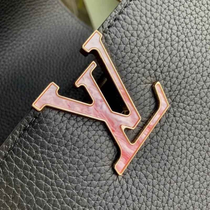 This M21150 black Capucines mini handbag is rendered in Taurillon leather. The deep color highlights the glittering LV letters, making each piece sparkle and chic. It is paired with leather handles and a detachable wide shoulder strap. Detailed features: 21??14??8 cm (length x height x width) Taurillon leather Taurillon leather trim Cowhide leather lining Shell and metal parts Flap can be placed inside or outside There are compartments and zipper pockets inside Spring buckle to prevent items from slipping Metal bottom nails Shoulder strap: detachable non-adjustable bag strap Half length: 42.0 cm Handle: single handle