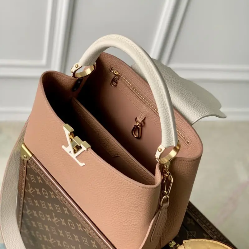 [Model M21296 Medium] Capucines MM handbag French imported calfskin, shiny metal accessories, unique Capucines flap can be put inside the bag to display the letter logo, and can be turned outside to show the Monogram Flower pattern size: 31.5 x 20 x 11cm