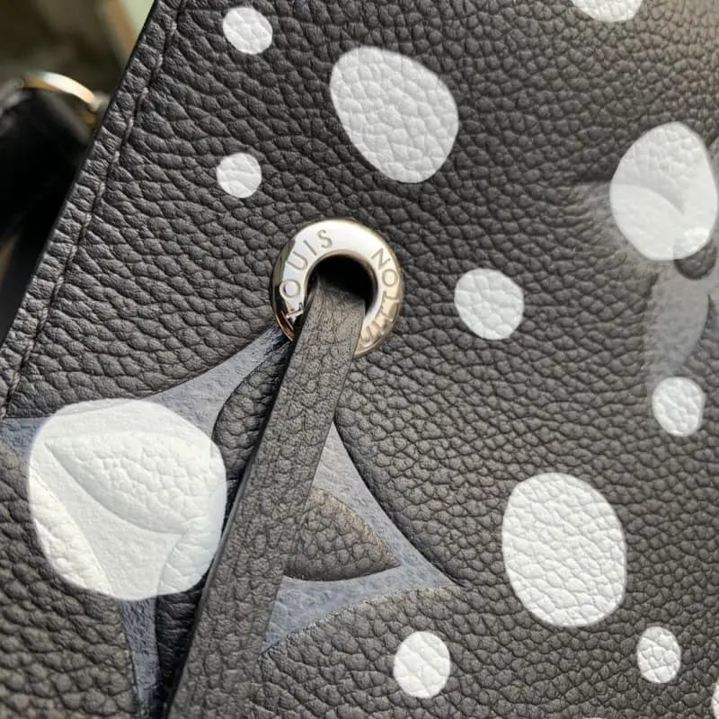 M21753 LV x YK N??oNo?? Medium Handbag from Lbag x Yayoi Kusama collaboration series condenses the creative energy of the infinite polka dot world. Monogram embossed cowhide leather reflects Yayoi Kusama’s iconic polka dots. The detachable pumpkin-shaped decoration adds to the artist’s visual business card. 26.0 x 26.0 x 17.5 cm (length x height x width)