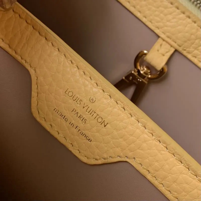 Top-grade original M21798 Yellow gold buckle This Capucines small handbag interlocks metal and resin links to add fun to the classic design. Removable chain. Taurillon leather presents a lustrous look. Place the flap inside to show it off. LV logo style. Detailed features 27??18??9cm (length x height x width)