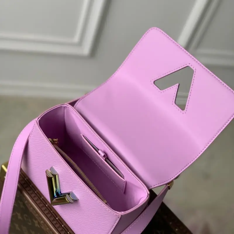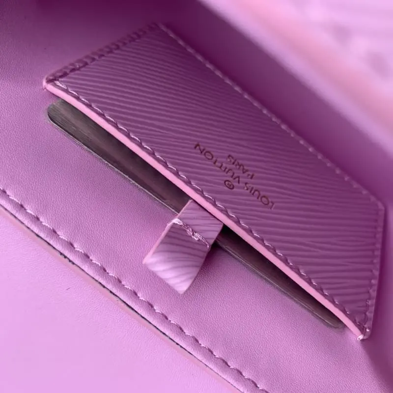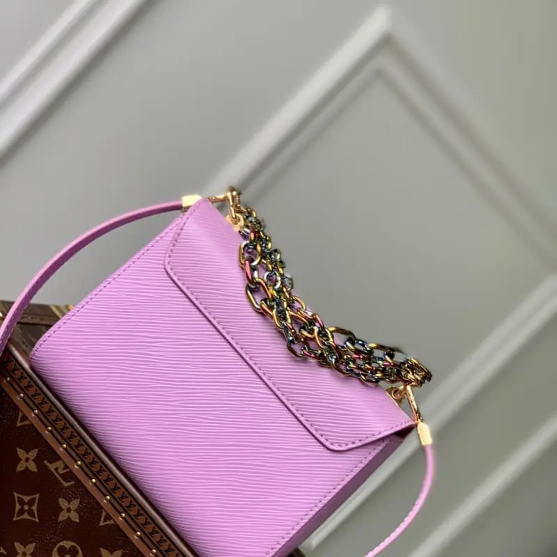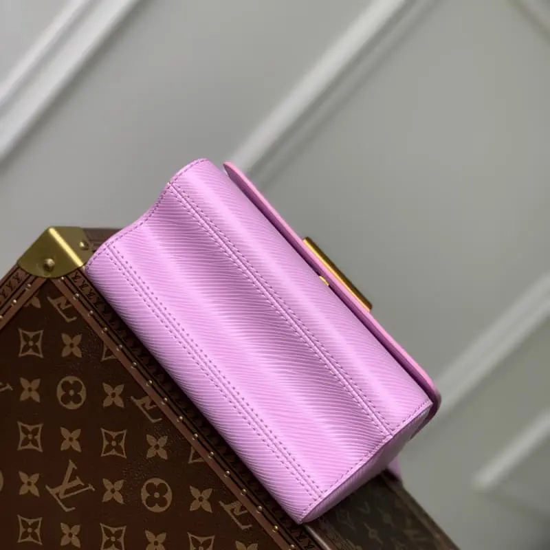 M22098 Purple Rose Red (50332 Rose Red Color Chain) This Twist handbag is made of Epi grain leather with a dazzling chain to convey avant-garde edge and extend the same metal texture to the iconic LV Twist lock. The chain and detachable leather shoulder strap provide hand-held, shoulder and crossbody options. Detailed features 19 x 15 x 9 cm (length x height x width)