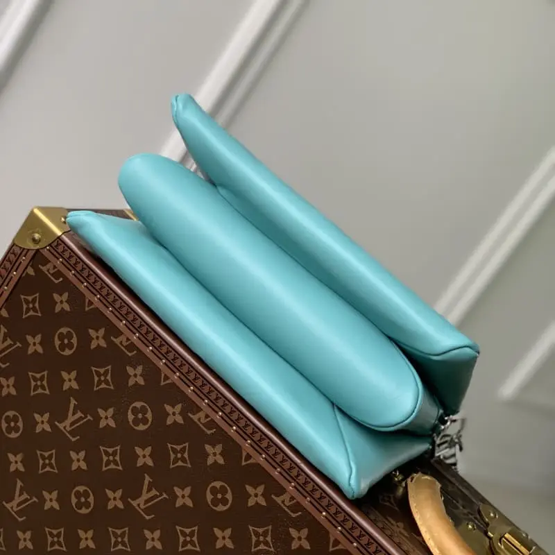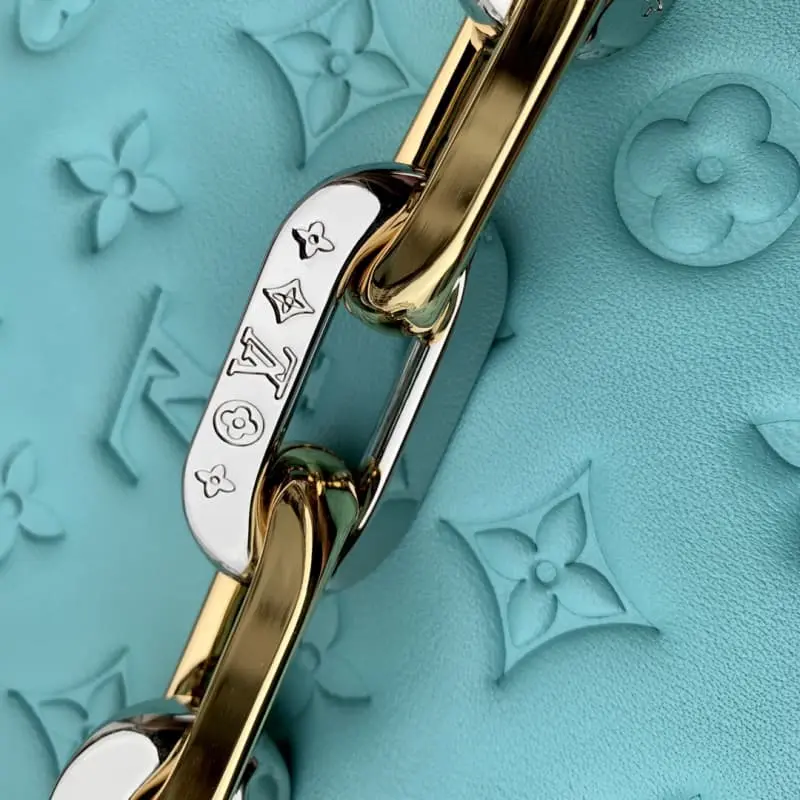 M22394 This Coussin small handbag is made of fluffy sheepskin leather and has a zipper pocket to separate the interior space. The thick chain combined with the detachable wide shoulder strap allows shoulder and crossbody options. 26.0 x 20.0 x 12.0 cm (length x height x width)