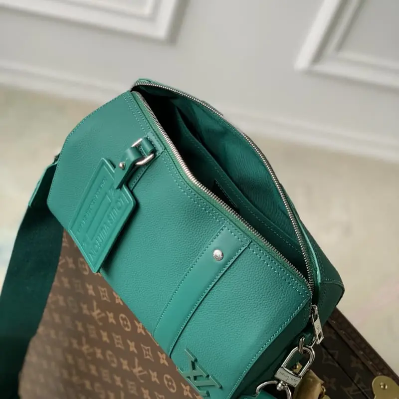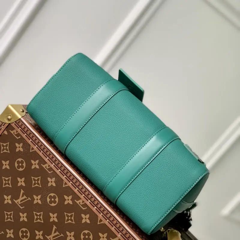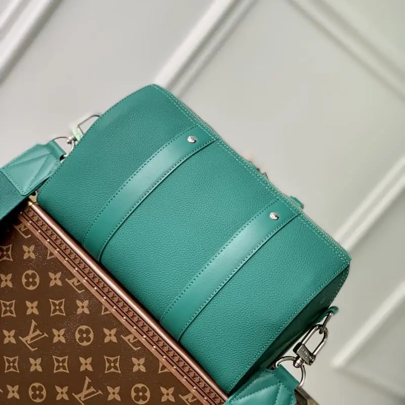 M22486 Green CITY KEEPALL This City Keepall bag is made of cowhide leather, leather trim and metal parts. It is inspired by the Lbag Keepall travel bag. Leather nameplate and LV monogram Aerogram series identity Removable and adjustable shoulder strap for easy shoulder carry. Detailed features 27 x 17 x 13 cm (length x height x width)