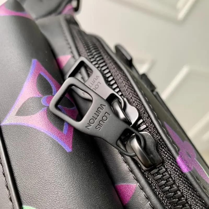 M22494 Comet waist bag focuses on the season’s Monogram Spotlight print, which casts neon light on the Monogram flower clusters and LV letters. Soft cowhide leather builds a modern silhouette. The zippered front pocket adds functional details. The adjustable shoulder strap and top handle allow for a variety of carrying methods. 45.0 x 17.0 x 9.0 cm (length x height x width)
