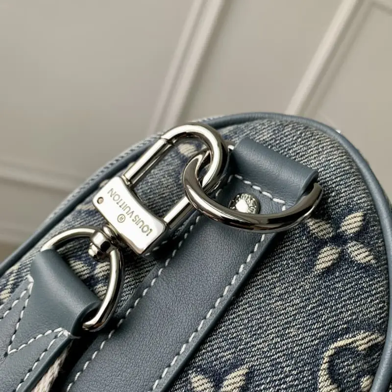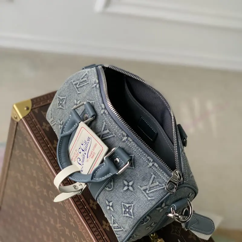 M22762 This Keepall Bandouli??re 25 bag shows the vintage texture of Monogram Washed Demin canvas. The Monogram pattern is first printed and then hand-painted, like a faded denim that has been baptized by time. It is paired with a vintage-style brand and a detachable and adjustable shoulder strap. Detailed Features 25 x 15 x 11 cm (length x height x width)