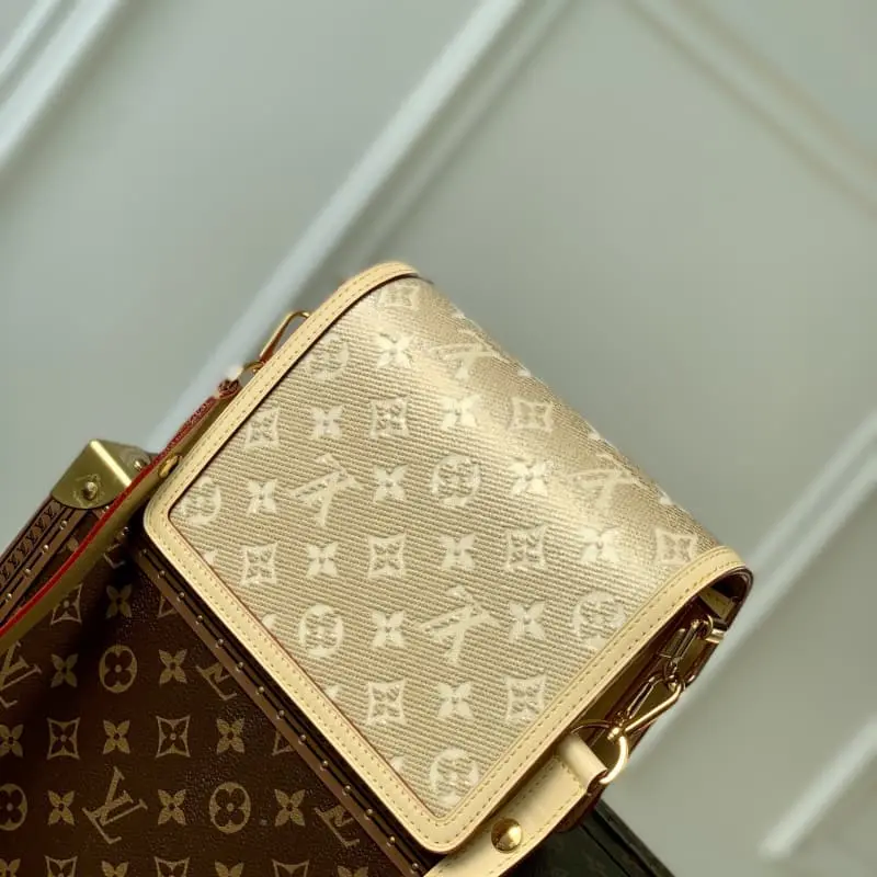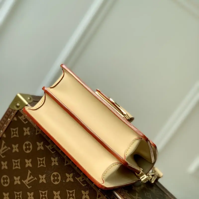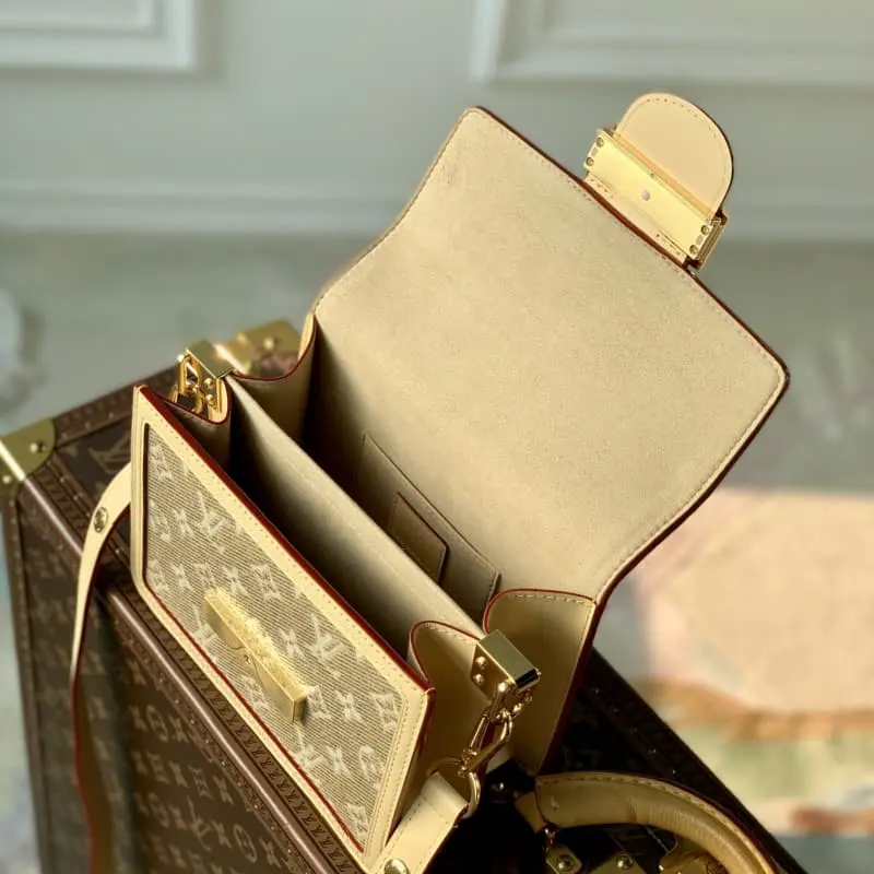 M22826 This Dauphine mini bag is made of Monoglam canvas with a metallic sheen. The cowhide trim and LV Circle magnetic buckle add a touch of luxury to the chic shape. The detachable and adjustable leather shoulder strap allows for a variety of carrying options. 20.0 x 15.0 x 9.0 cm (length x height x width)