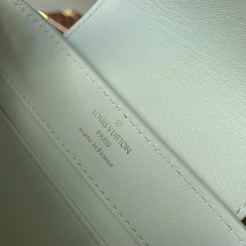M22863 Embroidered white Capucines handbag made of cowhide leather elegantly integrated with complex embroidery to highlight the Broderie Anglaise theme of the 2022 early autumn series. The cowhide body is decorated with Monogram perforated pattern. The embroidery stitching on the edge reinforces the hollow structure to achieve an exquisite design. Mini size 21??14??8cm