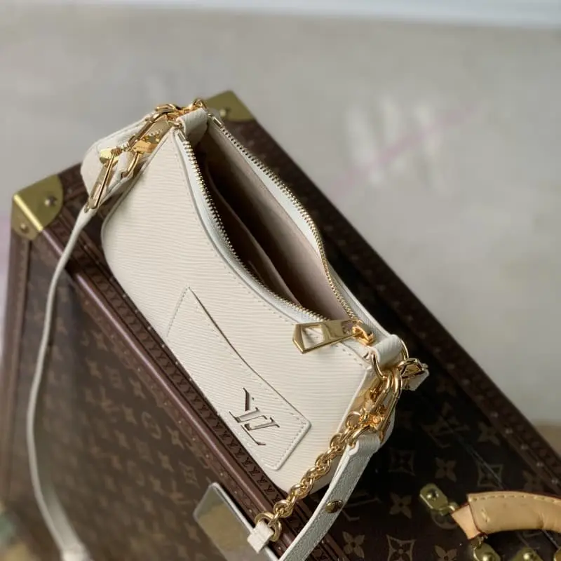 M22941 White (20998 Chinese Valentine’s Day) Valentine’s Day Limited Edition Marellini Handbag This Marellini handbag is from the LV Milky Way series. It is made of classic Epi cowhide leather and incorporates the dazzling brilliance of metal parts. It is paired with a detachable heart-shaped coin purse to make it a perfect gift for Valentine’s Day. Size: 19.0 x 13.5 x 6.5 cm.