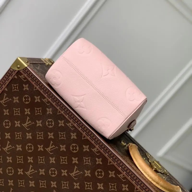 M22942 Pink This Pochette M??tis East West handbag is made of Monogram Empreinte cowhide leather with embossed Monogram pattern. It exudes a trendy atmosphere with the iconic S-lock buckle and detachable short chain. The neat interior and adjustable shoulder strap enrich the functional design. 21.5 x 13.5 x 6 cm (length x height x width)