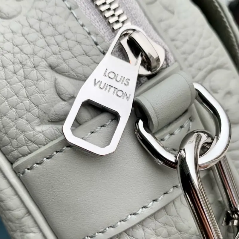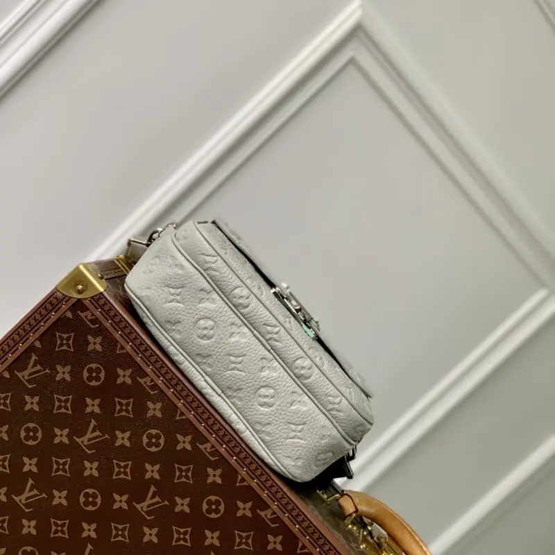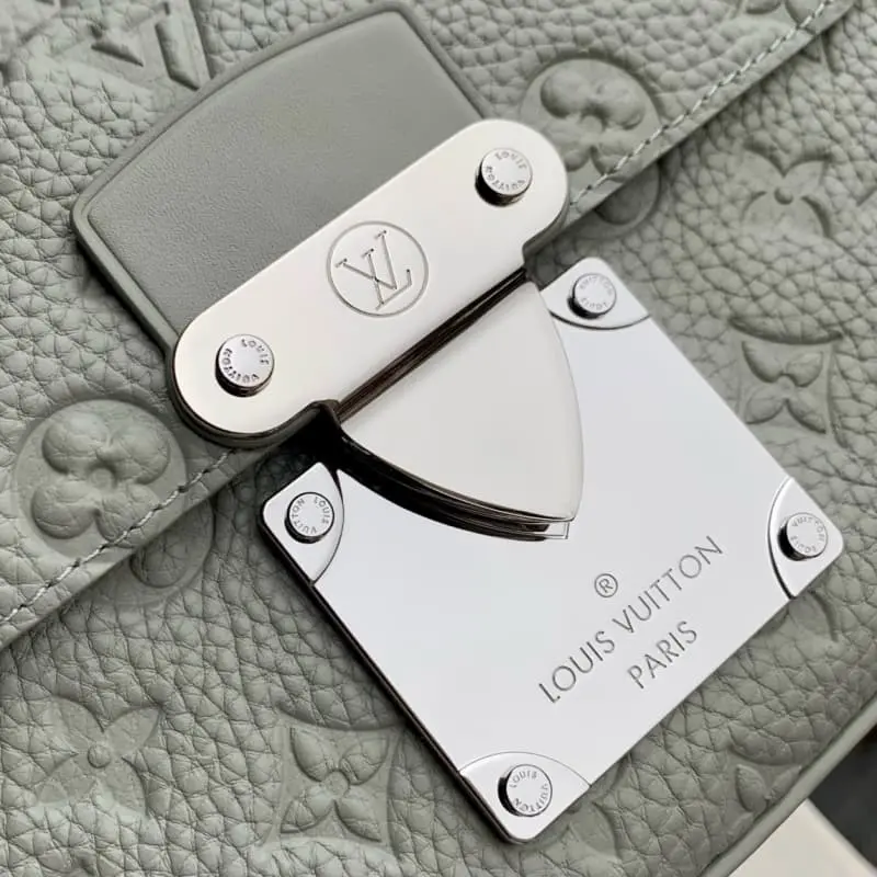 M23152 This S Lock messenger bag is made of grained Taurillon leather with embossed LV initials and Monogram floral pattern. The S Lock magnetic clasp opens the spacious front pocket, recalling the luggage lock design created by Georges Vuitton in 1886. The wide, detachable and adjustable shoulder strap adds flexibility. 22 x 18 x 8 cm (length x height x width)