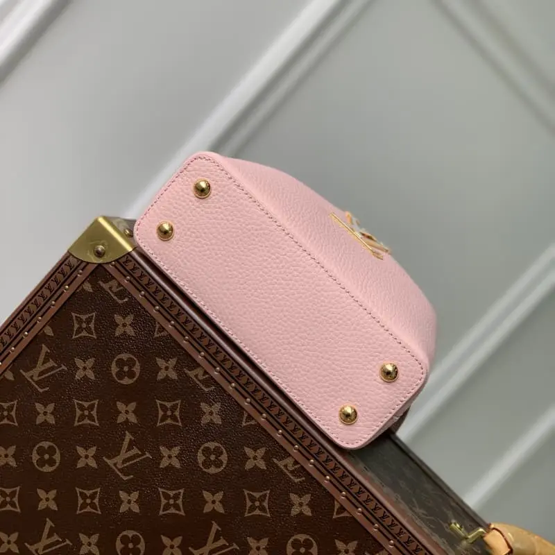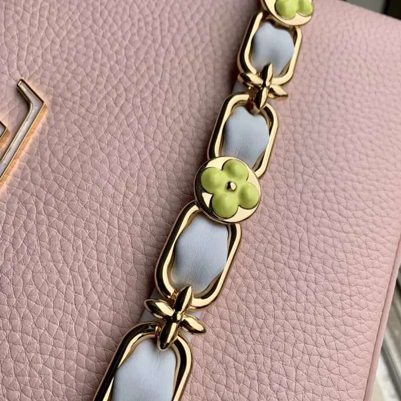 M23363 Pink Na Ying Series Capucines Medium Handbag M48865 This season’s new Capucines handbag highlights femininity. Metal links and elegant soft cowhide leather are woven into exquisite chains. Enamel and veneer Monogram Dhlo flowers are scattered on them. The enamel brand logo highlights the jewelry texture and makes the handbag even more beautiful. Size: 21 x 14 x 8 cm