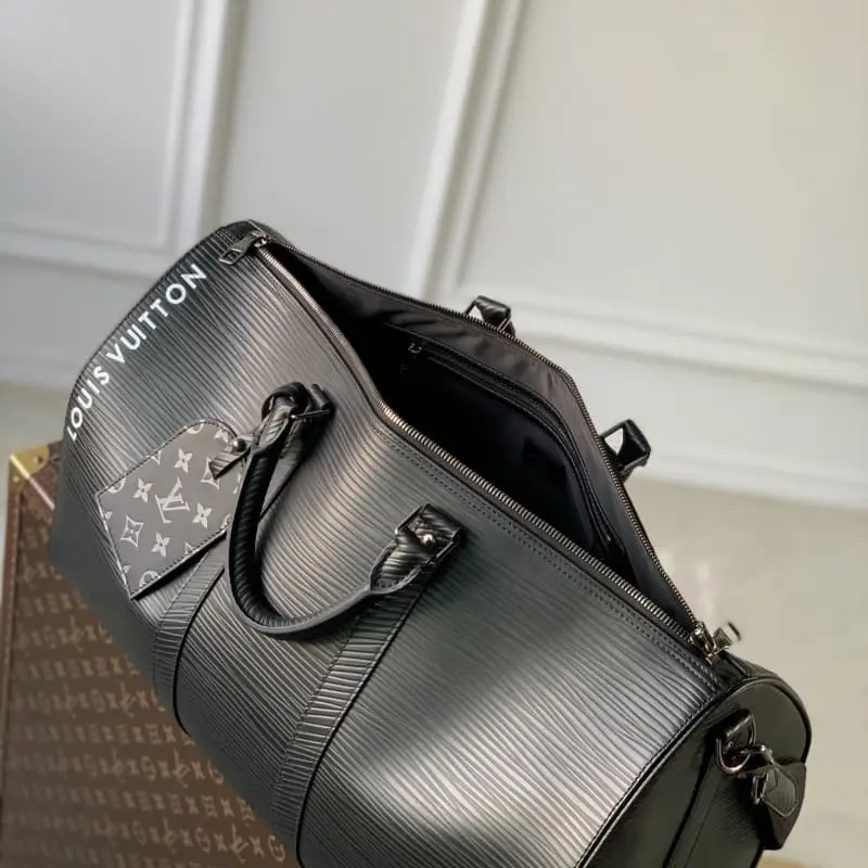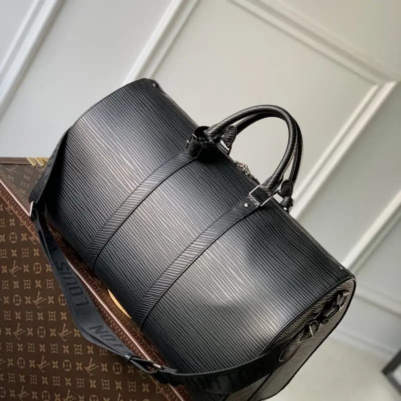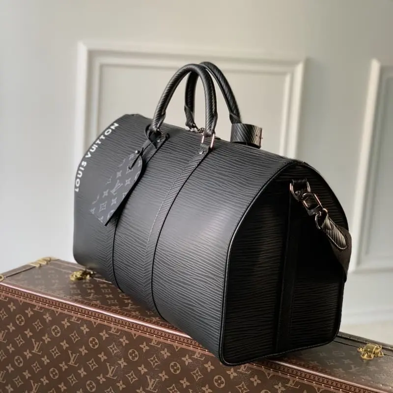 M23721 Black Water Ripple Full Leather Travel Bag Series This keepall bandouli??re 50 handbag is the brand’s new epi xl grain leather dipped in bright colors and embossed with an enlarged version of the classic epi pattern and the Lbag logo on the top to create a striking configuration. 50 x 29 x 23 cm