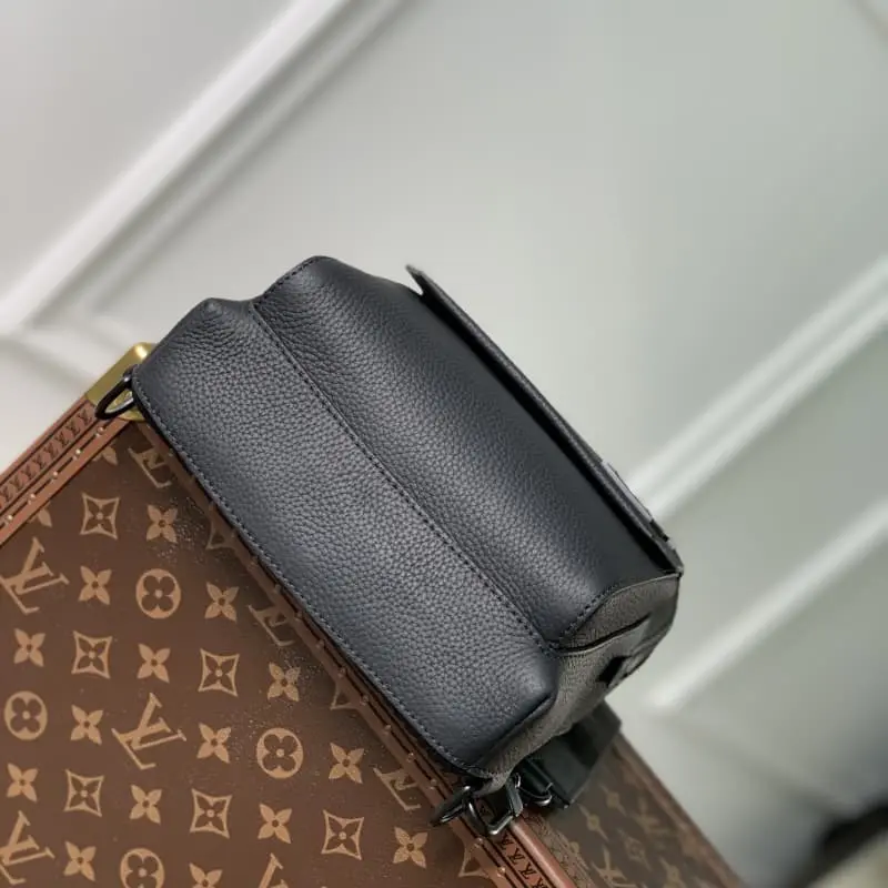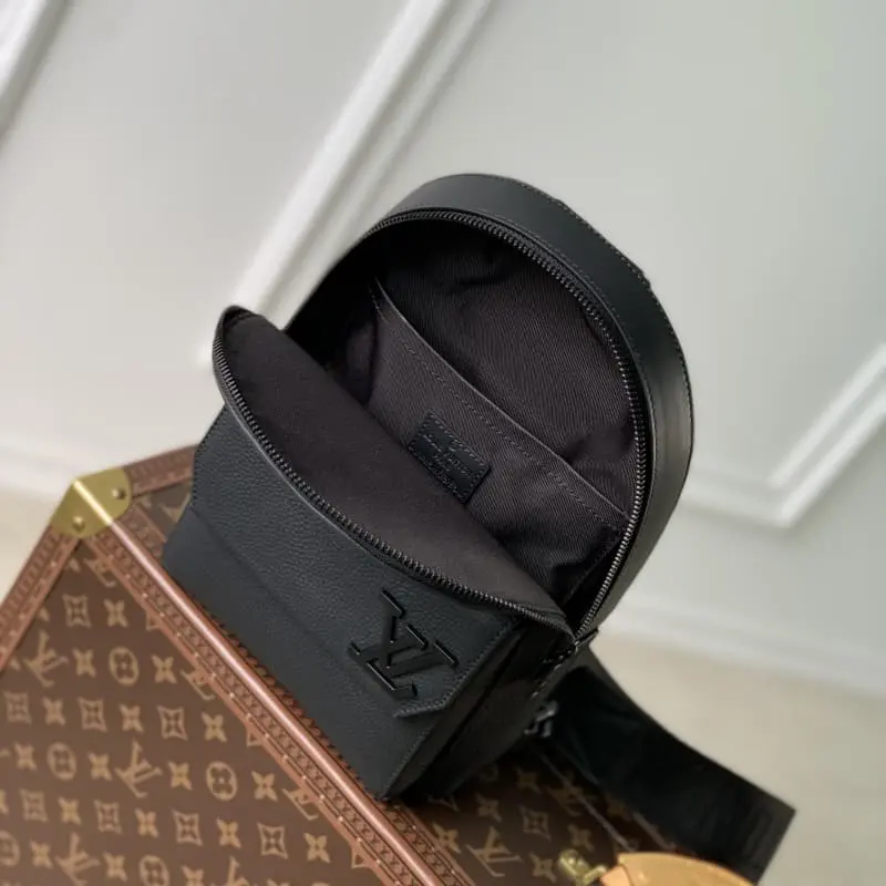 M23736 Full Leather Black Inspired by the much-loved takeaway backpack, the rounded silhouette and front wings showcase the iconic details of the LV Aerographic collection with aviator straps. Magnetic lock device for secure storage and easy access. Adjustable straps that can be attached to the left or right side of the bag. 20 x 30 x 4 cm (length x height x width)