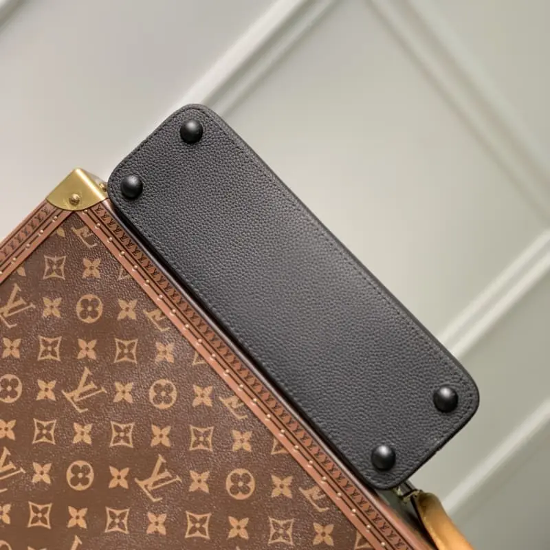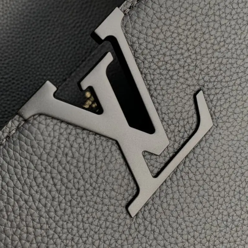 M23955 Black Small This Capucines Small Bag features a horizontal configuration that brings a new interpretation to the brand’s classic design. Luxurious cowhide leather and metal parts exude a matte texture. There is ample space to easily store a mobile phone, a long wallet and other daily necessities. The removable and adjustable leather shoulder strap allows for more styling possibilities. 29 x 18 x 9 cm (length x height x width)