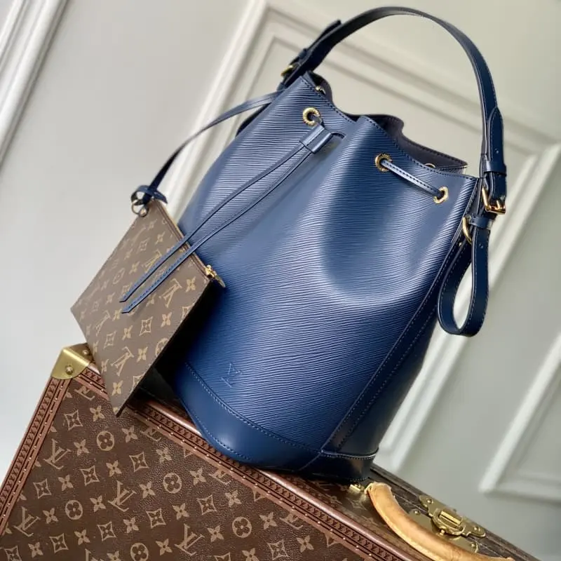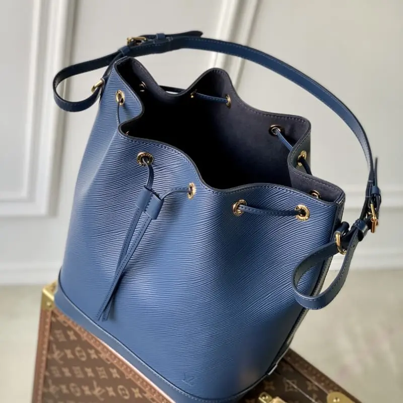 M24932 Blue Large This No?? MM bucket bag is part of the Nautical Collection. Made from soft Epi calfskin, it has been reworked to achieve the sensual characteristics of the No?? vintage version. The Epi leather here is calfskin that will become smooth over time while maintaining its original beauty. Inside there is a removable pocket to safely store valuables. Dimensions: 27??33??20cm (length x height x width)