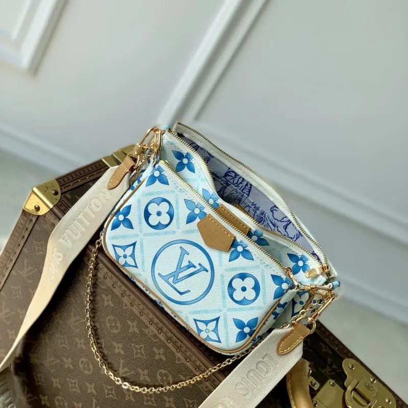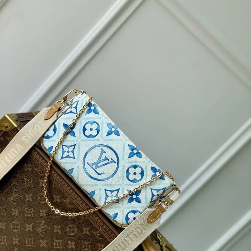 M25374 This Multi Pochette Accessoires handbag from the LV By The Pool series releases the summer atmosphere with Monogram Tiles canvas and zipper bags snuggle together. Use the detachable and adjustable wide fabric shoulder strap and dazzling chain to explore more styles and carrying possibilities. The gift box packaging of this product may be reasonably adjusted according to stock conditions and may be different from the packaging style displayed on this product page. Please refer to the actual gift box packaging style received. 24 x 13.5 x 4 cm (length x height x width)