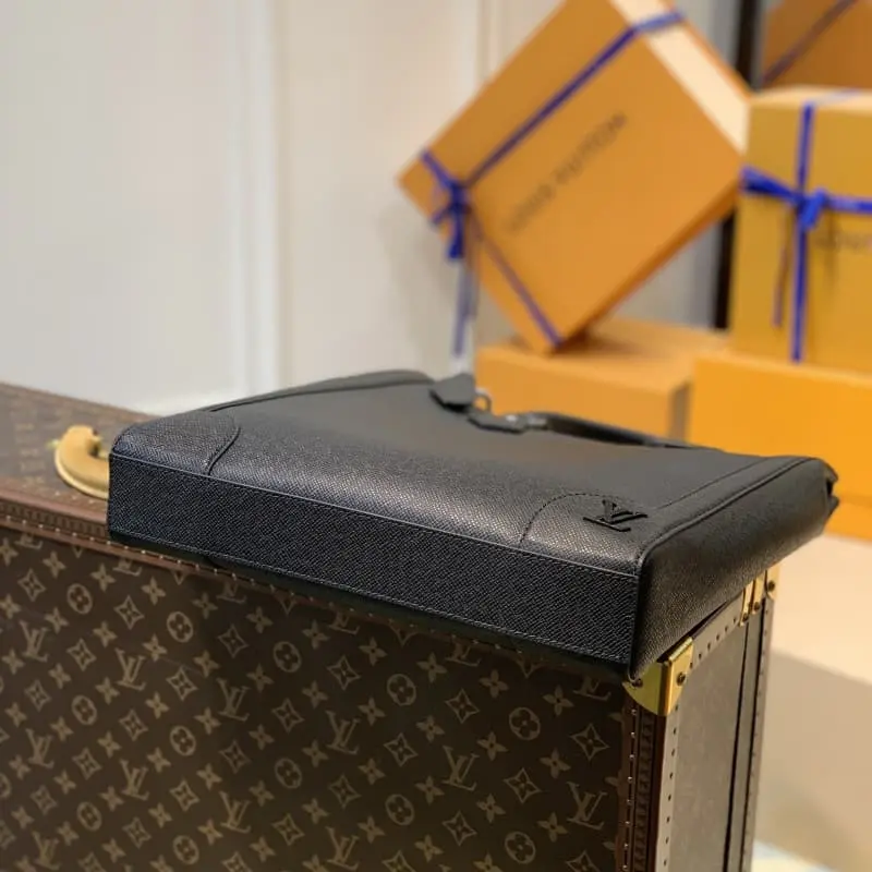 The M30811 Vertical Tote handbag uses Taga embossed leather to creatively interpret the briefcase design: the reinforced corners are derived from the Lbag box-making tradition, and the metal LV logo is embellished in a corner; the slim configuration has ample space inside and the detachable shoulder strap can be carried on the shoulder or across the body. Dimensions: 0 x 37.0 x 6.0 cm (length x height x width)