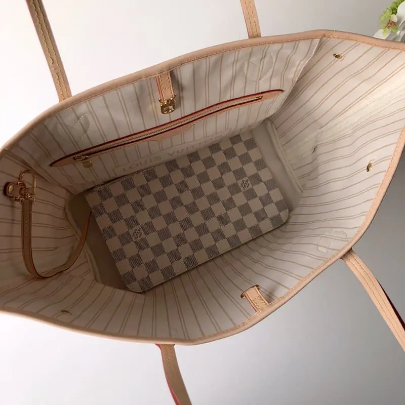 Classic Shopping Bag M41361 Size 32-29-17 Lbag’s new Neverfull is a new interpretation of the classic handbag. Explore the exquisite details inside the bag. The redesigned inner bag uses a fresh fabric lining and vintage details inspired by the Lbag archives. The most commendable is the detachable zipper clutch, which can be used as a delicate clutch or as an additional pocket. The bright lining color adds more lively and vivid feeling to the Monogram classic canvas.