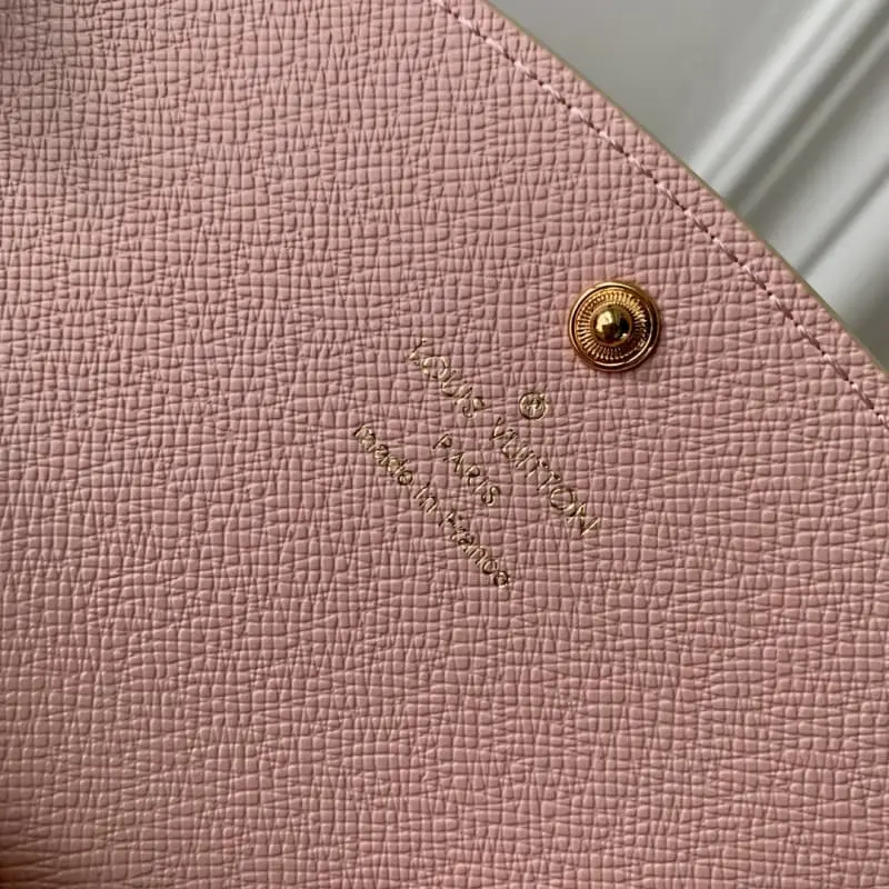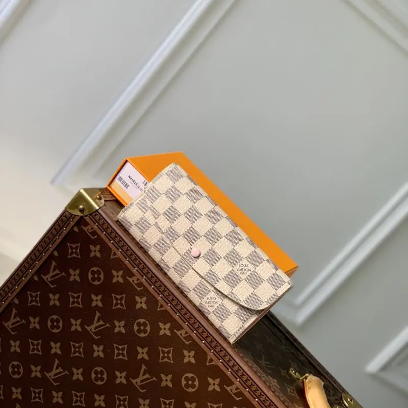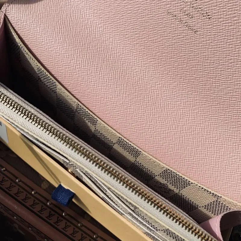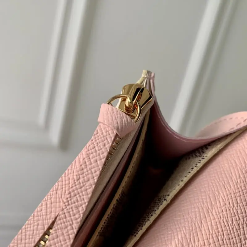 M41625 Leather buckle white checkered pink Practical and beautifully designed, the Emilie wallet is made of soft Monogram canvas with a brightly colored lining. It is extremely elegant. Its multi-pocket design and eye-catching shape give it an irresistible charm. size:19x10cm.