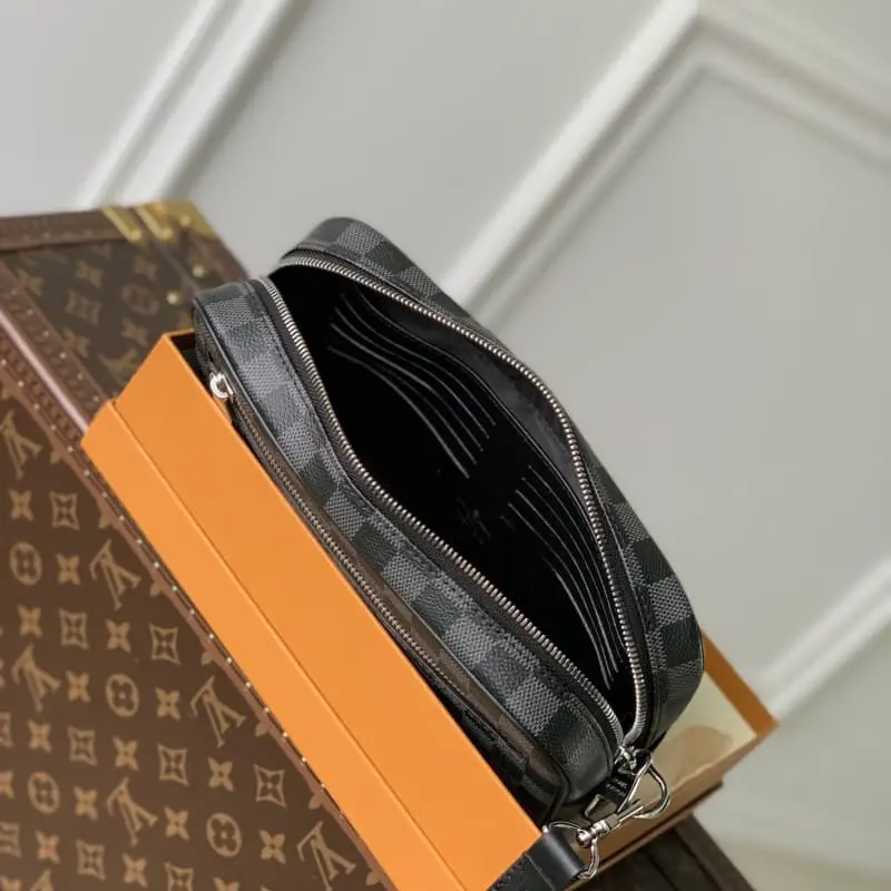 M41664 Black Pochette Kasai Clutch is made of fine Taga leather to create a compact structure and the LV letters are marked on the bottom corners. There are patch pockets and card slots inside to ensure that you can carry it neatly and orderly. The leather wristband allows for multiple ways of carrying. Dimensions 25 x 15.5 x 6.5 cm (length x height x width)