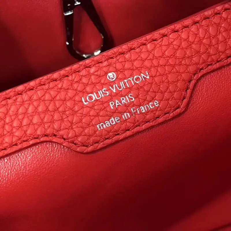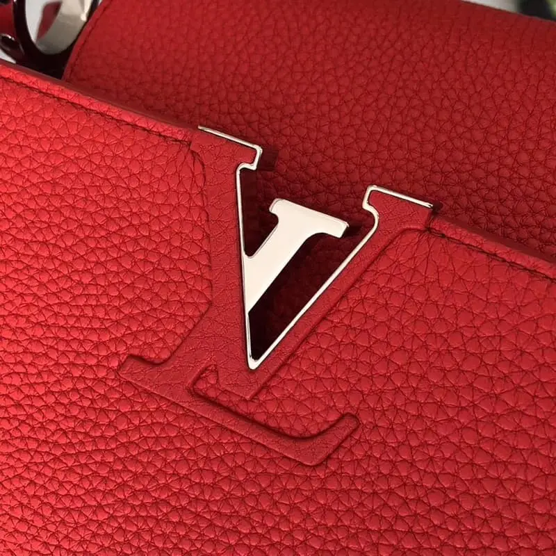 M42237 The upgraded Capucines handbag is classic and elegant. Made of full-grain Taurillon leather, it combines exquisite and elegant details, including a moderately hard handle, a gorgeous buckle connecting the handle, a spacious and practical shape, and two inner compartments. Its unique flap can be used in two ways: when placed outside the bag, it can show the Monogram flower pattern, and when placed inside the bag, it can reveal the LV initials. Size 31??21??11cm