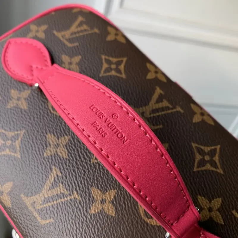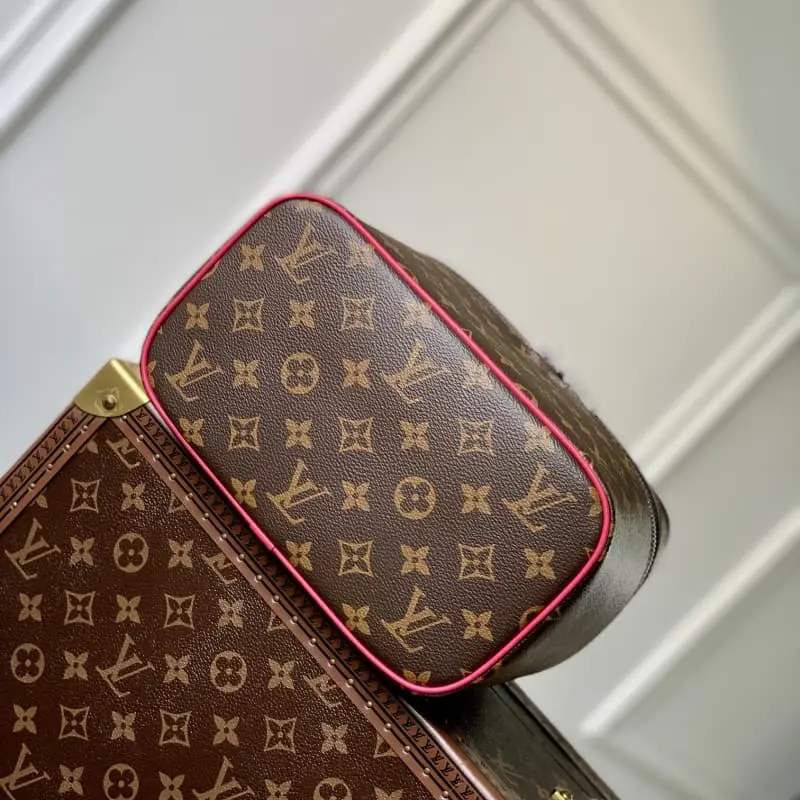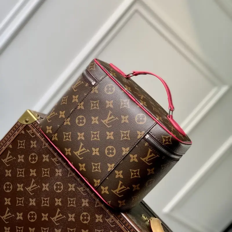 M42265 Rose Red This model is inspired by the iconic Nice cosmetic bag. This elegant toiletry bag is a personal choice for carrying basic beauty products. The hidden zipper pocket inside the flap can store particularly valuable personal items. – Top braided handle – Monogram coated canvas fabric – Lbag special coated canvas washable lining – Natural cowhide trim – Gold metal hardware – Double zipper closure – Large capacity inside the bag – Zipper pocket inside the flap – Several patch pockets inside – size 24??14??17
