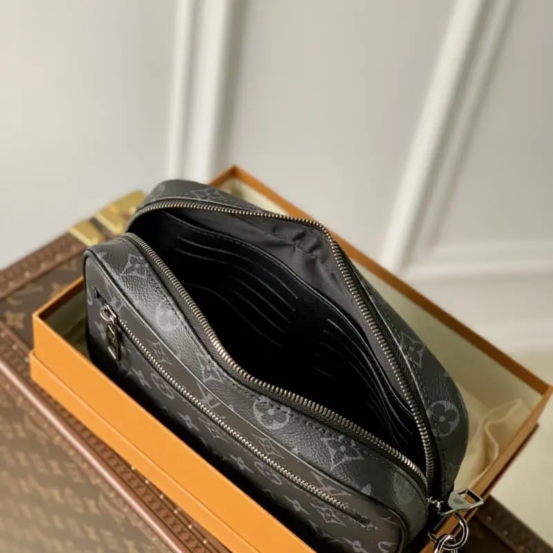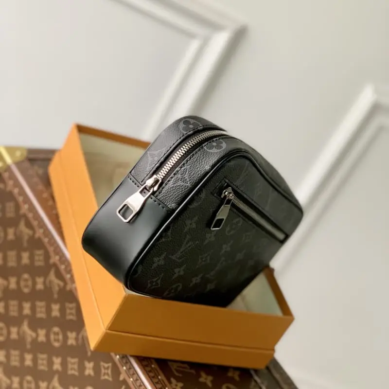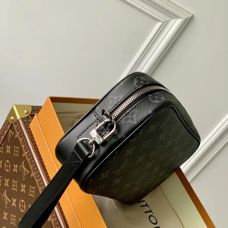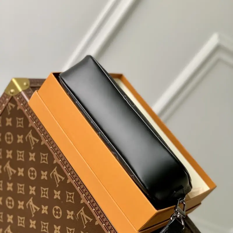 M42838 Black Flower Pochette Kasai Clutch is made of fine Taga leather to create a compact structure and the LV letters are marked on the bottom corners. There are patch pockets and card slots inside to ensure that everything is neat and orderly. The leather wristband allows for multiple ways of carrying. Dimensions 25 x 15.5 x 6.5 cm (length x height x width)