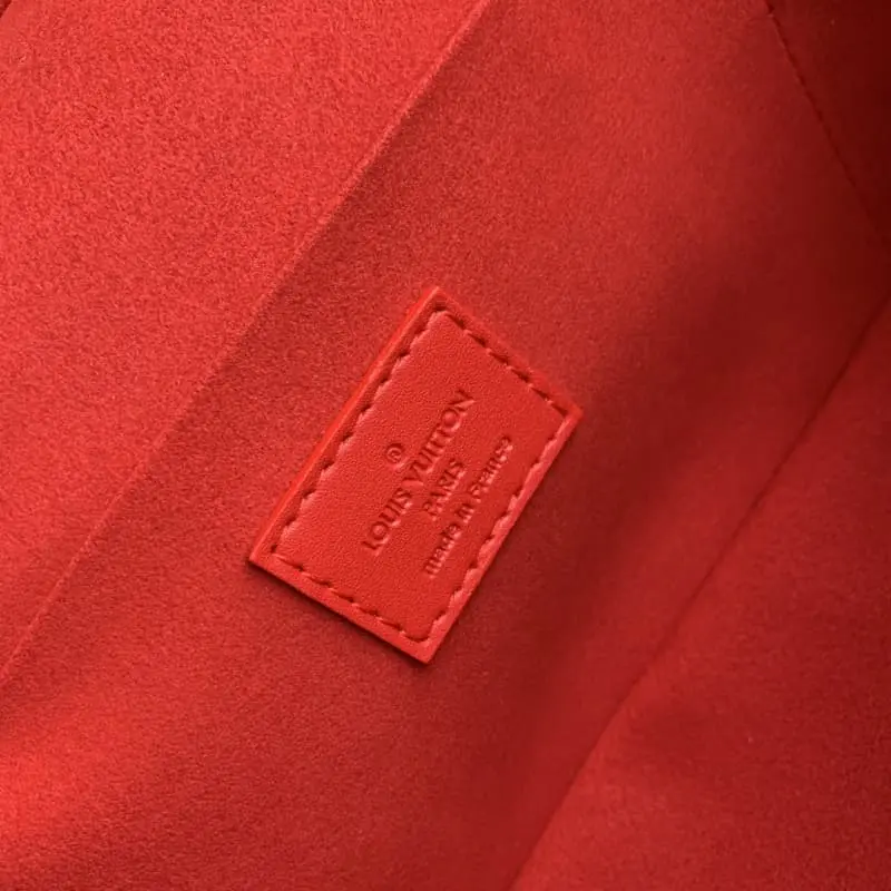M44495 Red This MINI cosmetic bag has a generous appearance and ample capacity. The fabric is soft canvas. The double zipper opening is convenient for taking and putting items. It is an ideal choice for fashion lovers. 20.0×13.5×12.0cm length x height x width