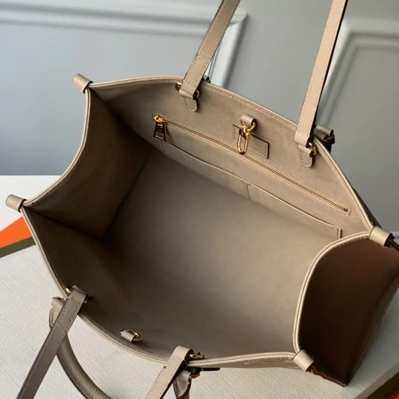 Original ONTHEGO medium handbag M45494. The Monogram pattern is first printed and dyed, then embossed. It is soft and soft on the grained cowhide. It is spacious and can hold laptops and other office supplies. The long and short handles are convenient for hand or shoulder carrying. Size: 34x26x13cm