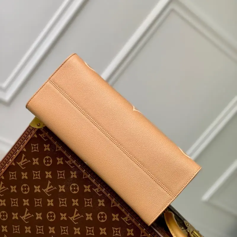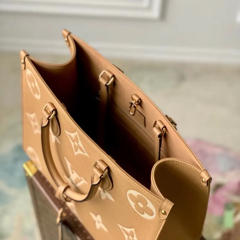 Original M45595 Light Yellow Silkscreen OnTheGo Medium Tote Bag The Medium Monogram pattern is first printed and then embossed on soft grained cowhide leather. The ample interior can accommodate a laptop and other office supplies. The long and short handles are convenient for hand or shoulder carrying. Dimensions: 35.0 x 27.0 x 14.0 cm (length x height x width)