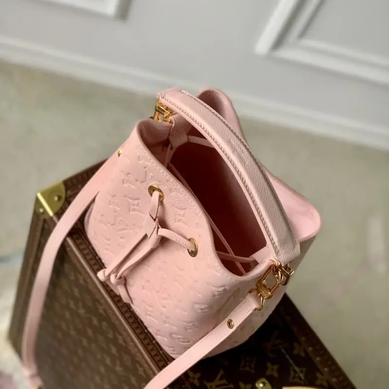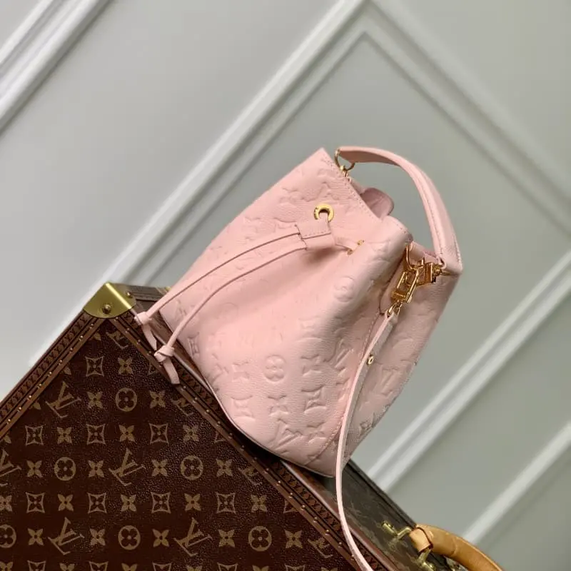 M45709 Pink (embossed) This NeoNo?? BB bucket bag is made of Monogram Empreinte leather and uses three-step spraying technology to present a lustrous iridescence, telling the color concept of the Summer Stardust Ys series. The drawstring closure and snap button inner pocket add functional detachable handles and shoulder straps to achieve a variety of carrying methods. Size: 20 x 20 x 13 cm