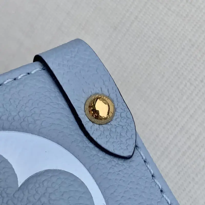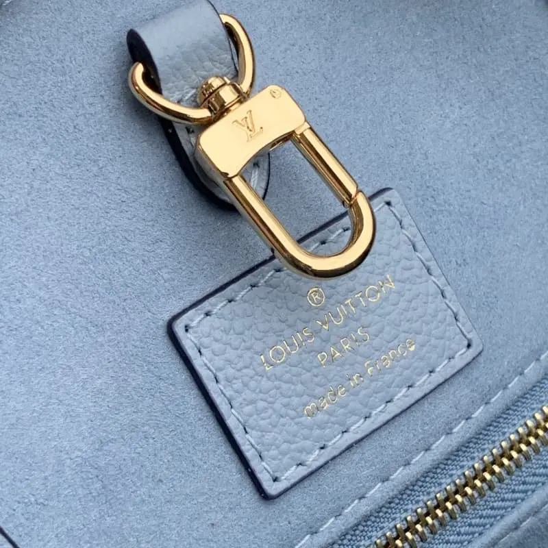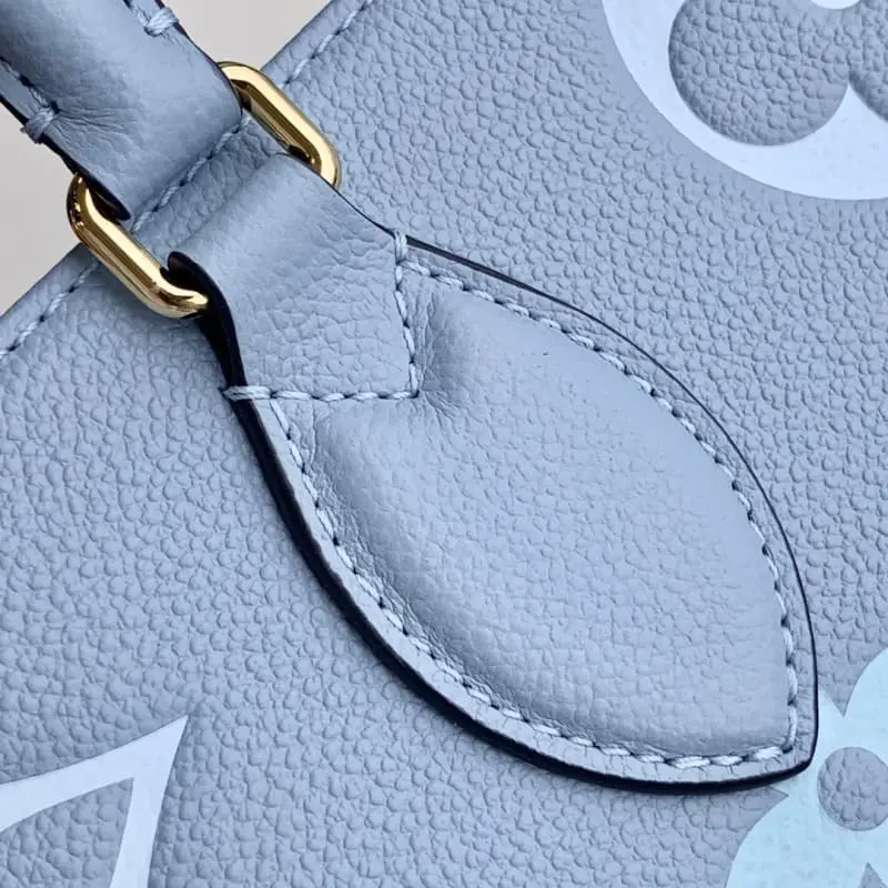 On the go medium M45718 blue By The Pool capsule collection OnTheGo medium Tote bag is made of Monogram Empreinte leather, with subtle gradient colors on the Monogram embossing. The humorous leather decoration is a testament to Lbag’s exquisite craftsmanship. There is ample space to easily accommodate laptops and other travel needs. The long and short handles are convenient for shoulder or hand carry. Dimensions 35.0 x 27.0 x 14.0 length x width x height