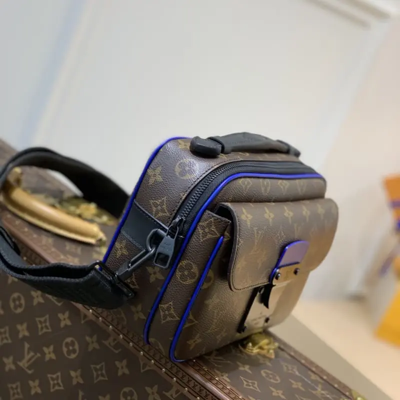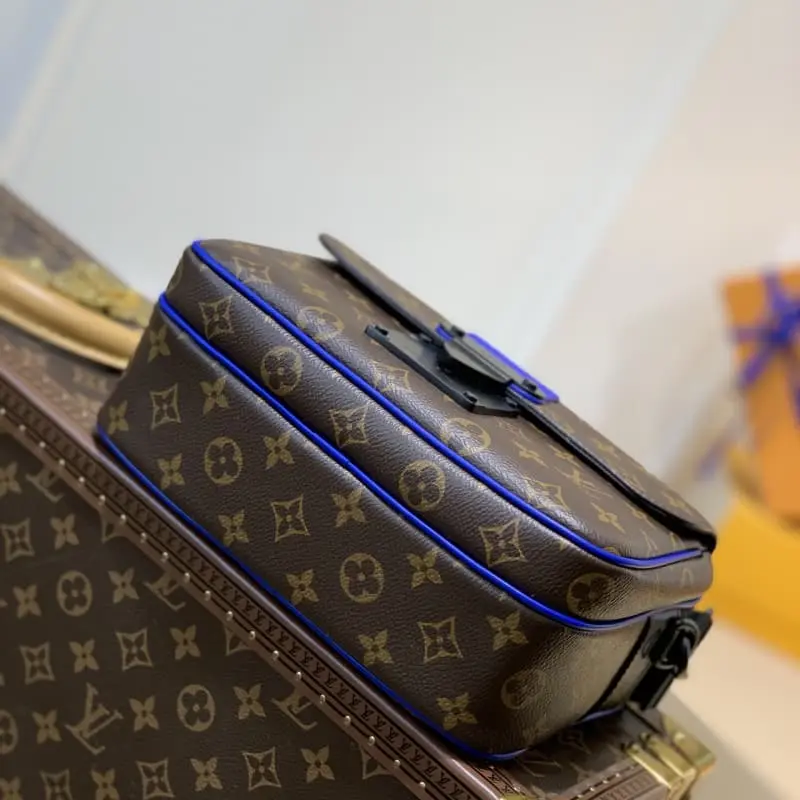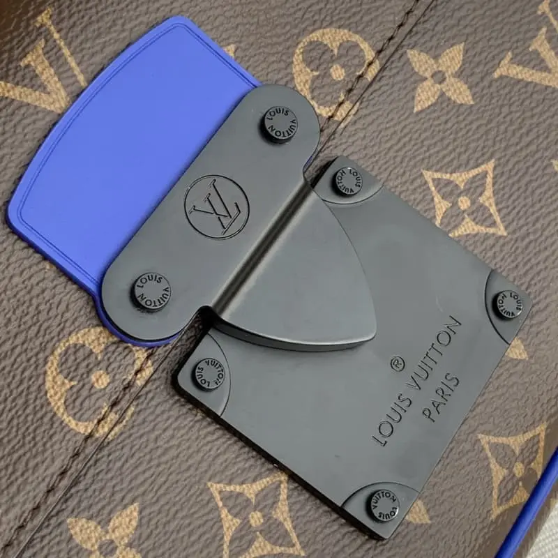 Original M45863S Lock messenger bag made of Monogram Macassar canvas The new lock is inspired by the hard case lock designed by Georges Vuitton in 1886. The special finishing process gives this magnetic metal lock a striking and modern look. It is also equipped with a spacious zipper compartment, hard case-style leather handles and LV logo shoulder strap. Stylish and easy to use. Dimensions: 22 x 18 x 8 cm