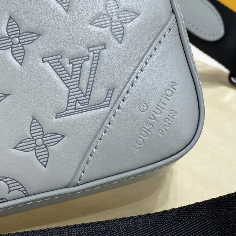 M46104 Grey full leather embossed DUO messenger bag Top layer cowhide Duo messenger bag in Monogram Shadow leather with classic Monogram pattern embossed modernity reveals calmness and elegance. Logo woven embellished shoulder strap with detachable coin pocket. Full leather embossed two-piece shoulder bagoo[Handshake][Handshake]Detailed features 26.0 x 18.5 x 5.0 cm