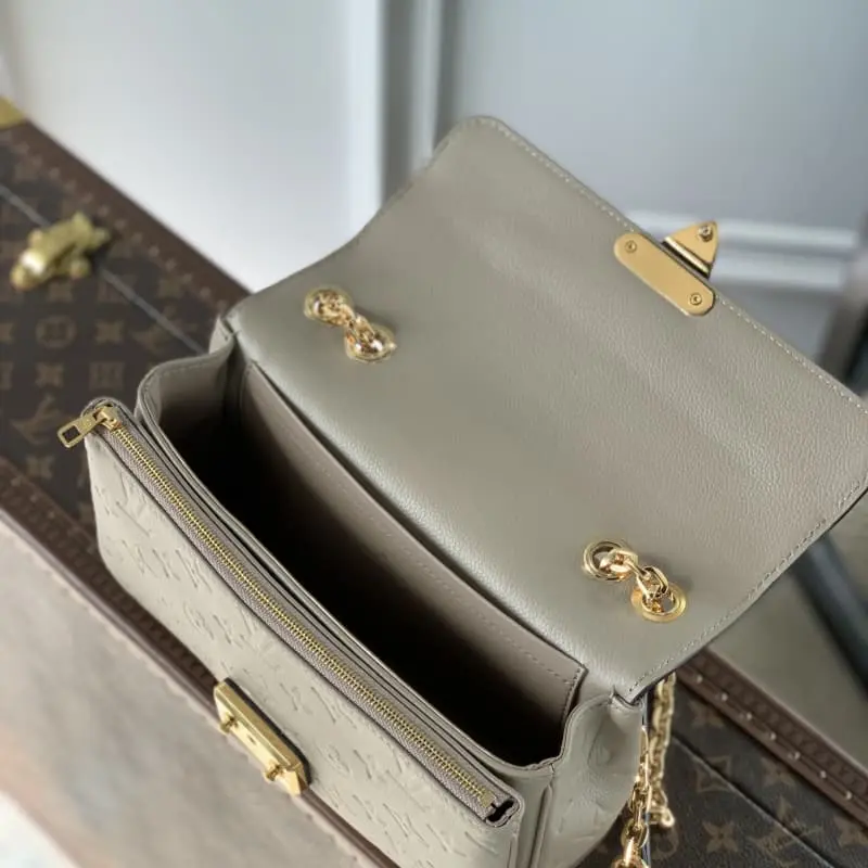 M46200 Grey embossed Lbag launches the Marceau chain bag in spring 2022, inspired by the Pochette M??tis handbag in a compact size. The S-lock clasp is inspired by the brand’s box-making heritage. The sliding chain shoulder strap is equipped with a comfortable leather shoulder pad. Dimensions: 24.5 x 15.0 x 6.5 cm