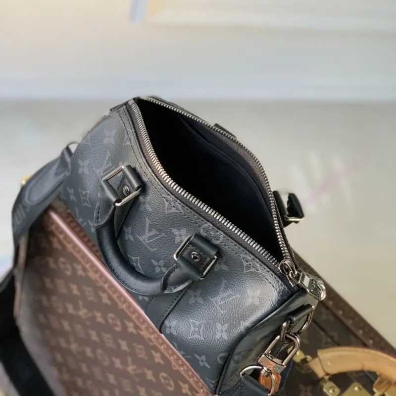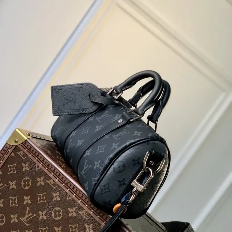 Original M46271 Black Flower This Keepall 25 handbag is made of Monogram Eclipse Reverse canvas, showing an elegant reinterpretation of Lbag’s classic pattern. The reinforced straps and leather nameplate continue the iconic elements of the Keepall series. The zipper closure allows personal items to be carried safely. Dimensions: 25.0 x 15.0 x 11.0 cm (length x height x width)