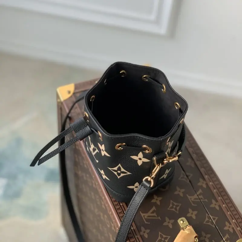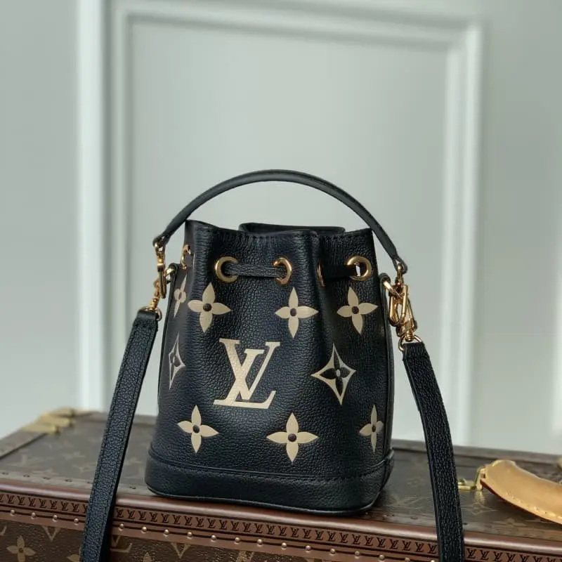 Style No.: M46291g This Nano No?? bag has the LV letters and Monogram flowers first printed and then embossed on the leather to create an eye-catching look that confuses the eye. Ample space for daily needs. The adjustable shoulder strap and handles are both detachable for multiple carrying methods. 13 x 16 x 10 cm (length x height x width)