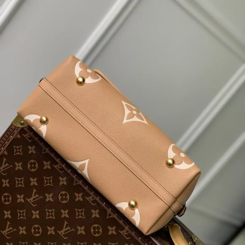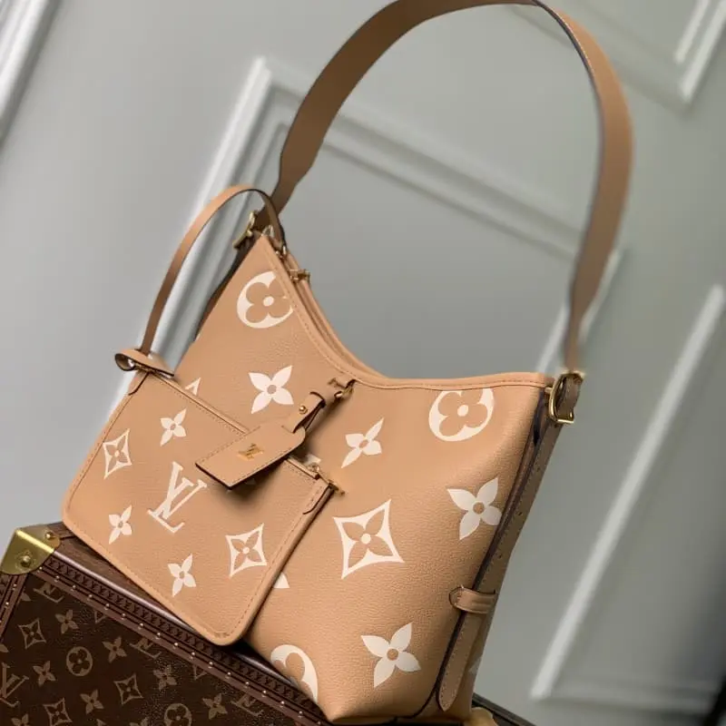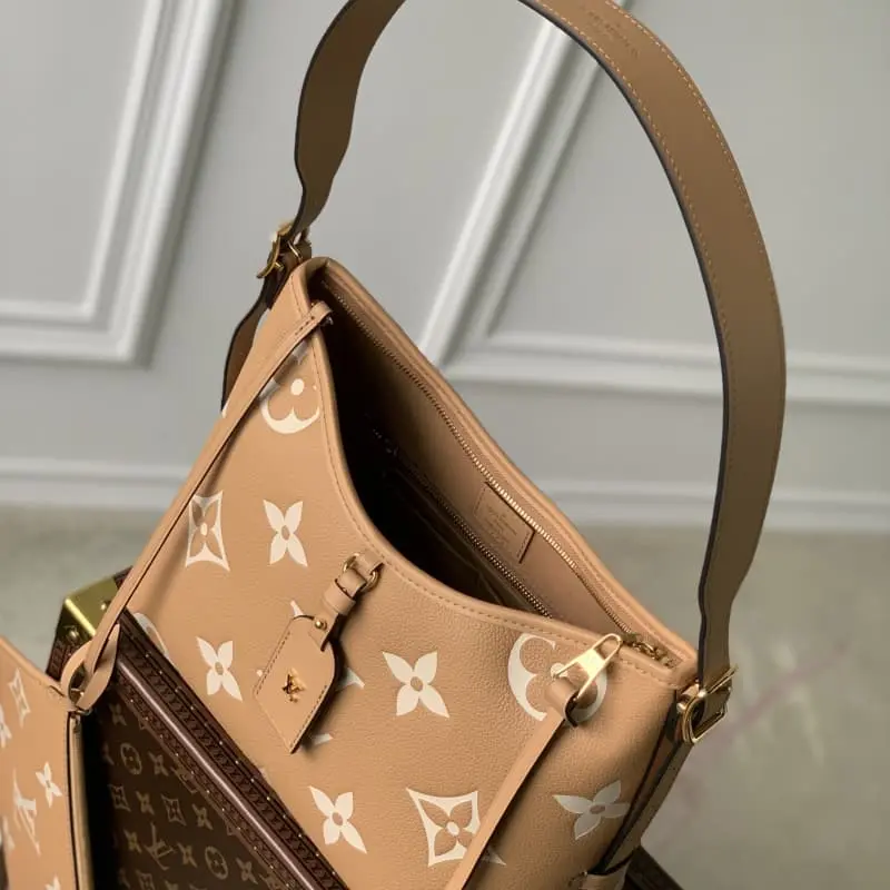 M46293 Brown CarryAll Small Handbag Made of Monogram Empreinte Leather Ample structure with neat inner large pockets to add functional elements. Paired with Monogram embossed zipper clutch secured with leather strap. A close companion for urban life. 29 x 24 x 12 cm