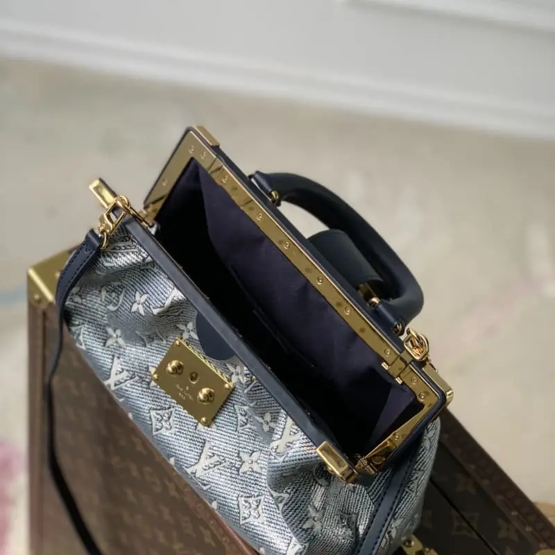 M46544 Blue Cloud Bag Series Monogram Clutch Handbag The Monogram Clutch handbag from the 2023 Spring/Summer fashion show features a Monogram canvas body with cowhide trim and classic S-lock buckle, rivet buckle, metal corners and other metal parts. In addition to the top rolled leather handle, there is also a detachable bag chain and a retractable swivel joint. 28.0 x 14.0 x 10.0 cm (length x height x width)