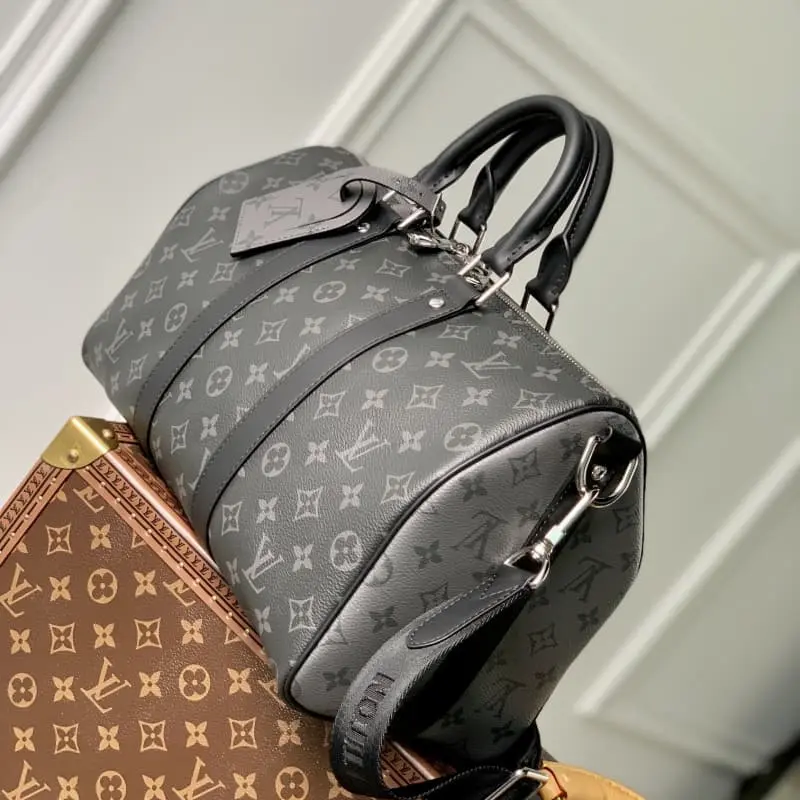 The M46655 black flower Keepall 35 travel bag is made of the new iconic Monogram Eclipse canvas. Since 1930, the Keepall series of bags have accompanied generations of travelers around the world. This new version of the travel bag is equipped with multiple leather handles for comfortable grip, a strap for casual crossbody, and a shiny padlock. It is a companion for short trips. The side straps and top rolled leather handles inherit the classic Keepall travel bag design. The detachable and adjustable fabric shoulder strap is convenient for shoulder or crossbody carrying. The capacity is slightly increased compared to the City Keepall handbag. Size: 35x21x6cm