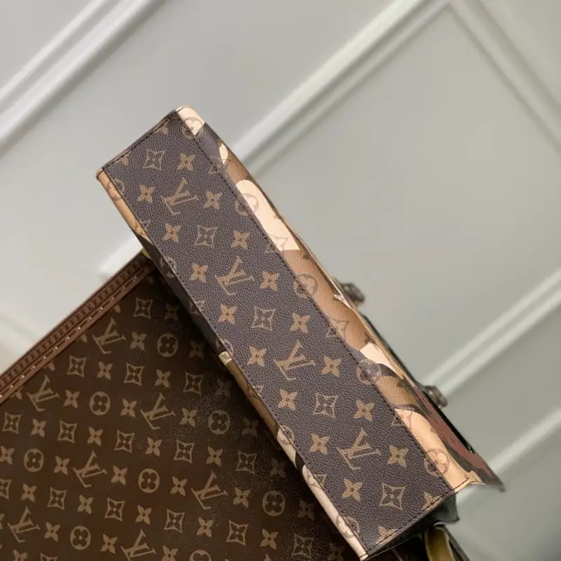 M46679 Presbyopia Men’s Bag Briefcase Series SAC PLAT NV Handbag This Sac Plat handbag is made of coated canvas to create a classic men’s handbag. The face is outlined in different shades of color and then sewn with leather patches to add a finishing touch. Size: 36.5 x 38 x 9 cm (length x height x width)
