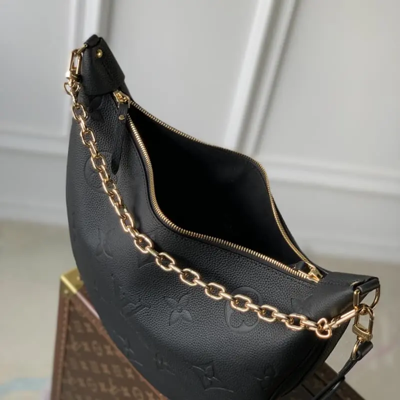 M46725 This Loop Hobo handbag is made of soft Monogram Empreinte cowhide leather and has a trendy half-moon shape that fits the body shape with ample space, making it a great choice for urban travel. The detachable zipper pocket can also be used alone, and the chain or adjustable shoulder strap can be used to explore more carrying methods. 38.0 x 26.0 x 10.0 cm (length x height x width)