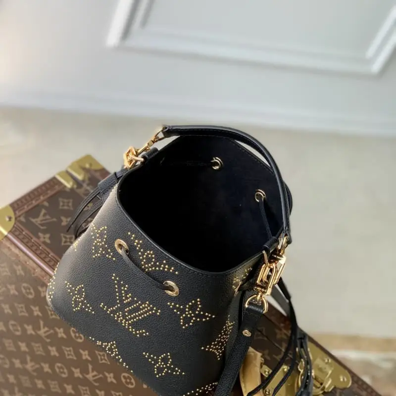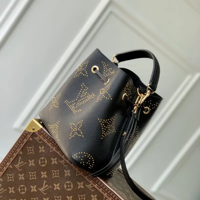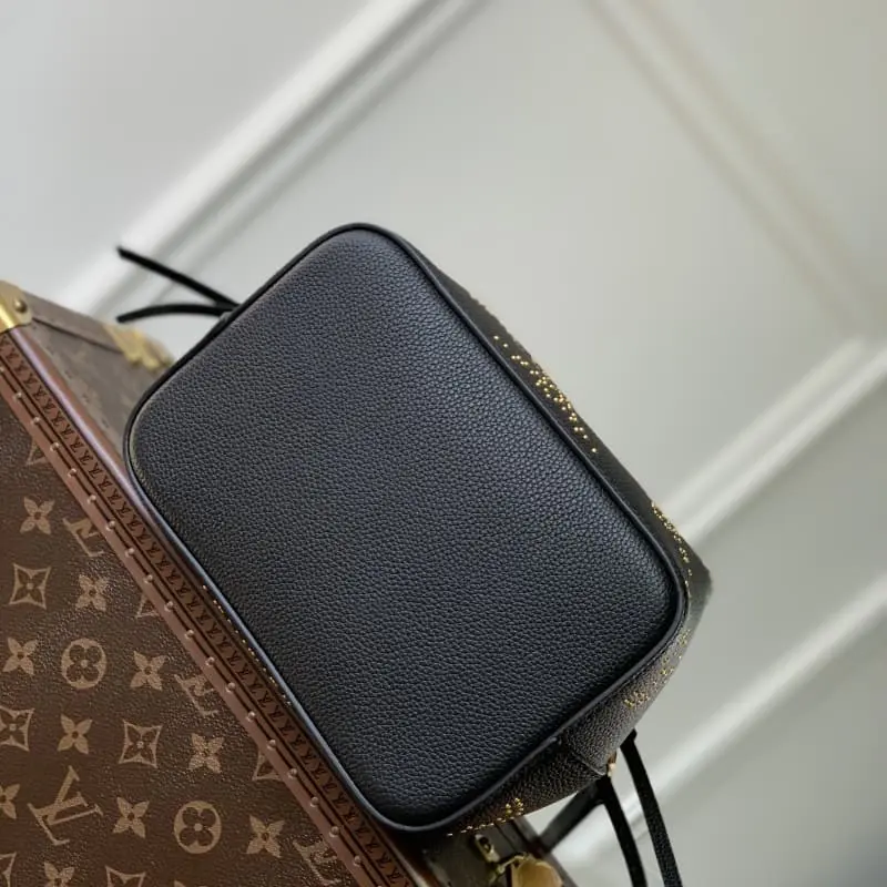 M46734 Black full leather rivet bucket bag series N??oNo?? BB bucket bag uses studs to inject avant-garde edge into the Monogram pattern. The exquisite structure can properly store mobile phones, keys, wallets and other personal items. The top handle and shoulder strap can be detached to switch between hand-carrying, elbow-carrying and shoulder-carrying. Dimensions: 20.0 x 20.0 x 13.0