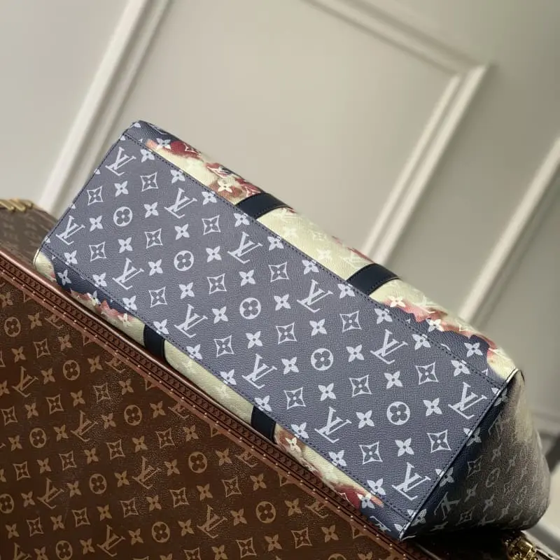 M46812 blue handbag is hand-painted and slightly faded and then embossed with the Monogram pattern. Ample space combined with flat handles and adjustable shoulder strap. Detailed features 43 x 34 x 17.5 cm (length x height x width)
