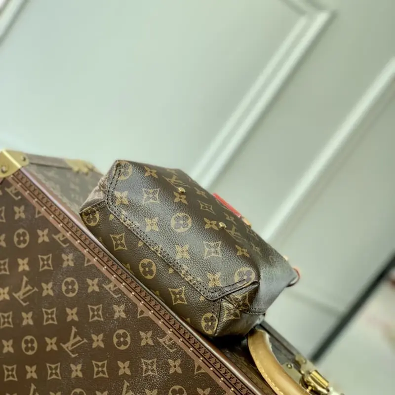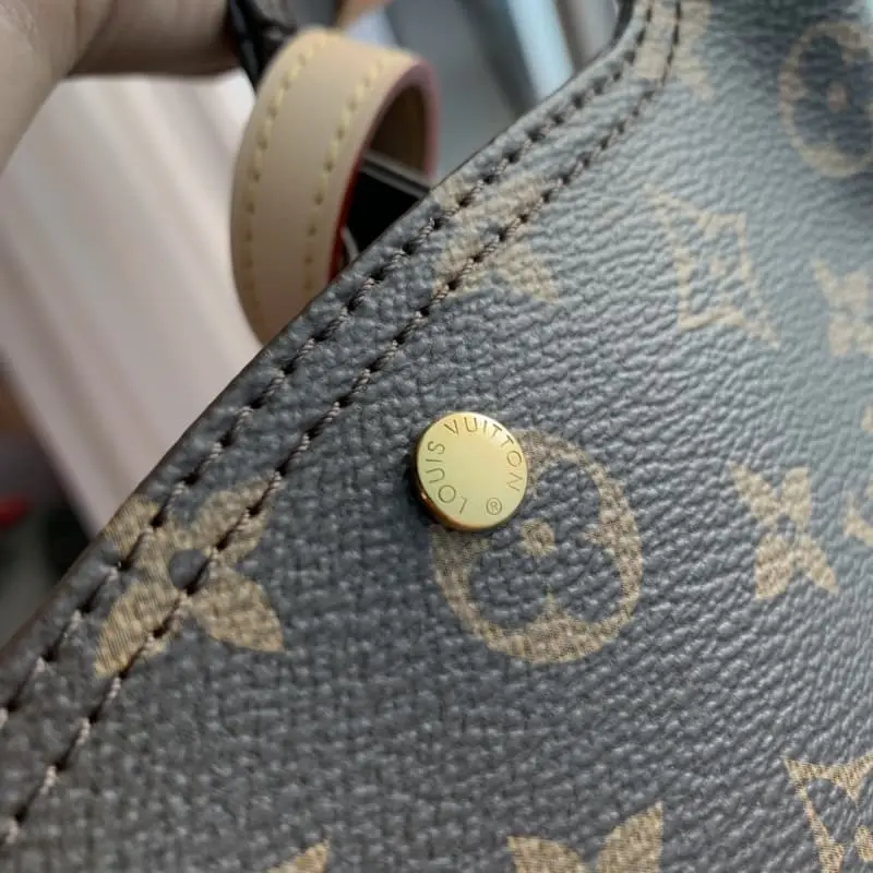 M46816 Monogram Atlantis BB handbag made of Monogram Reverse canvas with LV brand name and shoulder straps outlined with cowhide trim. Trendy shopping bag style silhouette, soft and close-fitting, removable and adjustable shoulder strap for easy crossbody. 17.0 x 17.0 x 7.0 cm (length x height x width)