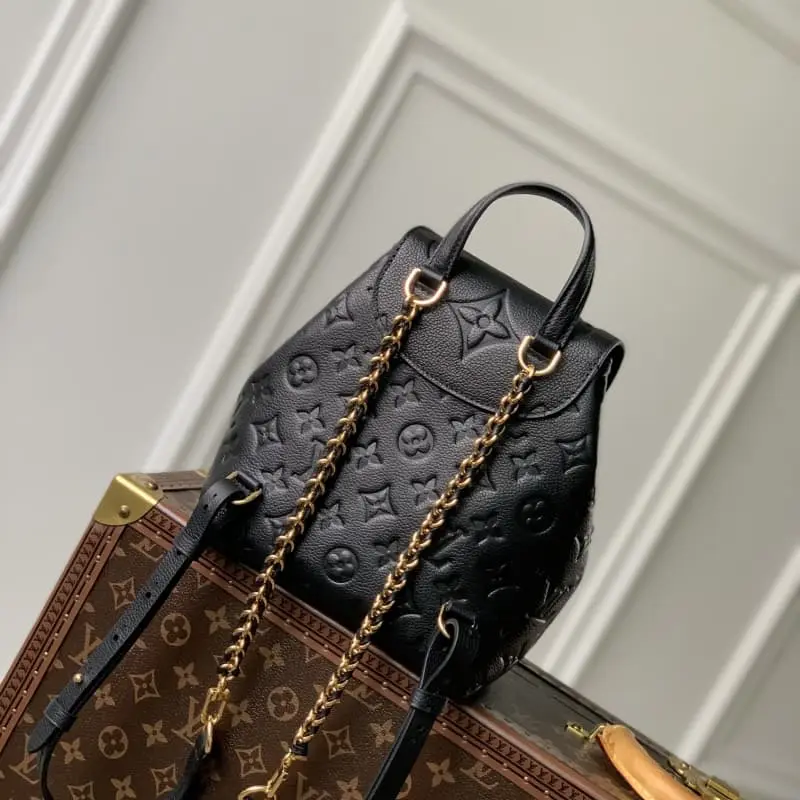 The M47074 pink Backup backpack is made of Monogram Empreinte cowhide leather with low-key Monogram embossing. The detachable and adjustable shoulder strap allows for single or double shoulder carry, while the top handle and braided chain allow for hand or cross-body carry. 20 x 22 x 14 cm (length x height x width)