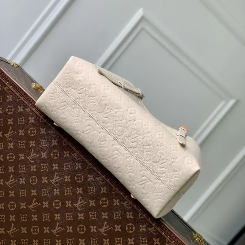 M47185 Large White This stylish Babylone Tote bag is made of cowhide leather with gold hardware. Its slim design makes it surprisingly practical. The interior has a central zip pocket large enough to hold a 13-inch laptop. Versatility Its handles can be adjusted for hand carry and the shoulder strap is adjustable in length and width. 37??26??14cm (length x height x width)