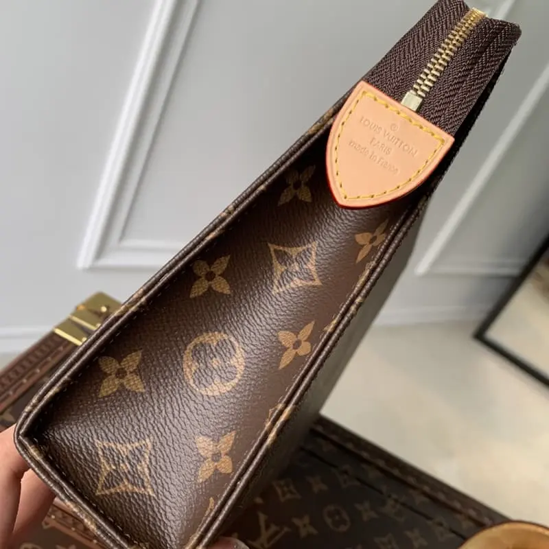 M47195 3-piece set “Set 3 Bosch Perfume” of 3 different sizes of Lbag classic cosmetic bags. Made of Monogram canvas, the lining is wiped with water and applied in different bright colors. This is an elegant and functional cosmetic bag. It is a single item carefully made with silver metal parts. Size: 25 x 20 x 5.5 cm